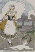 once upon a time there was a maid who lived in the countryside. she had a small piece of land where she had a cow that had startedd to give good milk. once she got a bucket of milk form the cow, she put it on her head and decided to take it to the market. while she was on her way, she began to think what she would do with the money she would get form the milk. first, she would buy some hens from farmer brown, and the hens would lay eggs every morning. then, she thought that she could sell the eggs and that she would get a lot of money. as soon as she had the money, she would buy herself a new dress and a had.